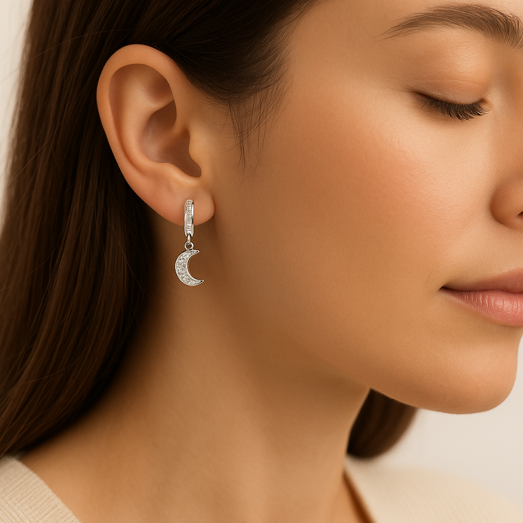 Lasciati avvolgere dall’eleganza magnetica degli Orecchini Luna Brillante ✨, un gioiello versatile, luminoso e delicato.