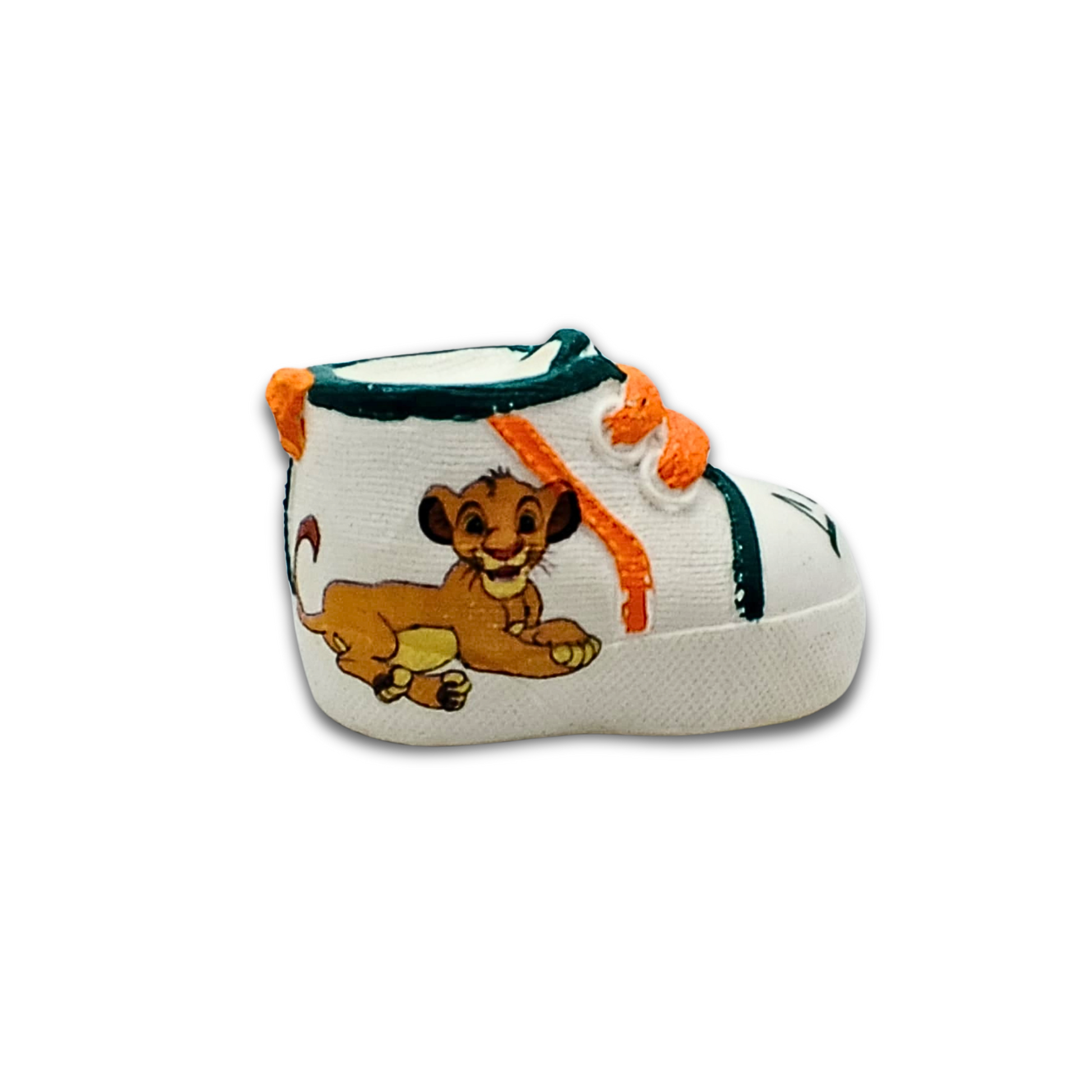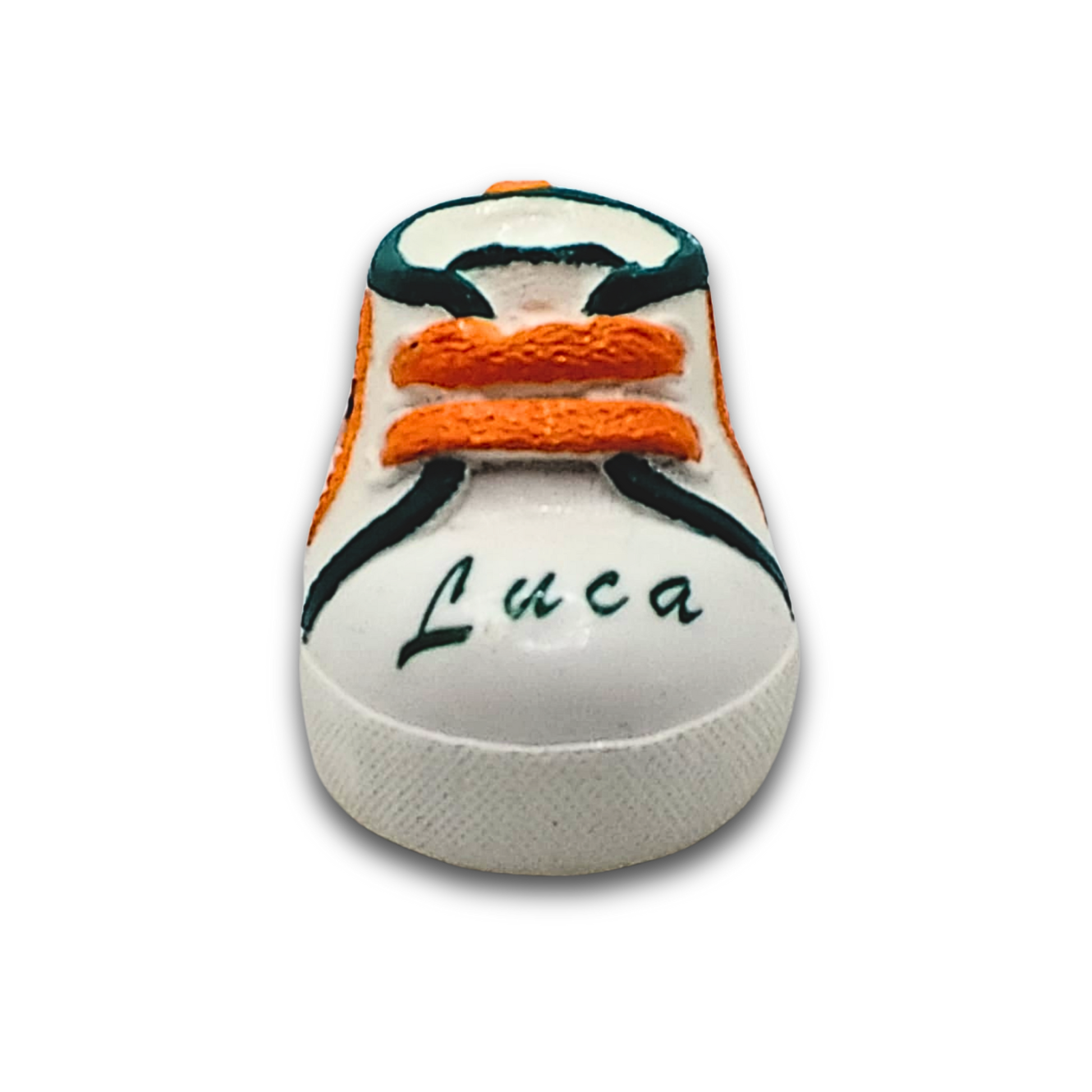 Celebra la nascita, il battesimo o il primo compleanno con questa bomboniera a forma di scarpetta personalizzata! Realizzata in simil ceramica, questa dolce miniatura è decorata con lacci colorati, il nome e immagine per un tocco unico e speciale.