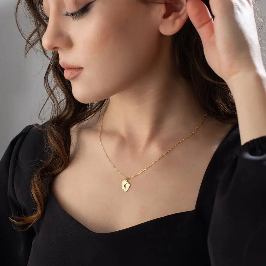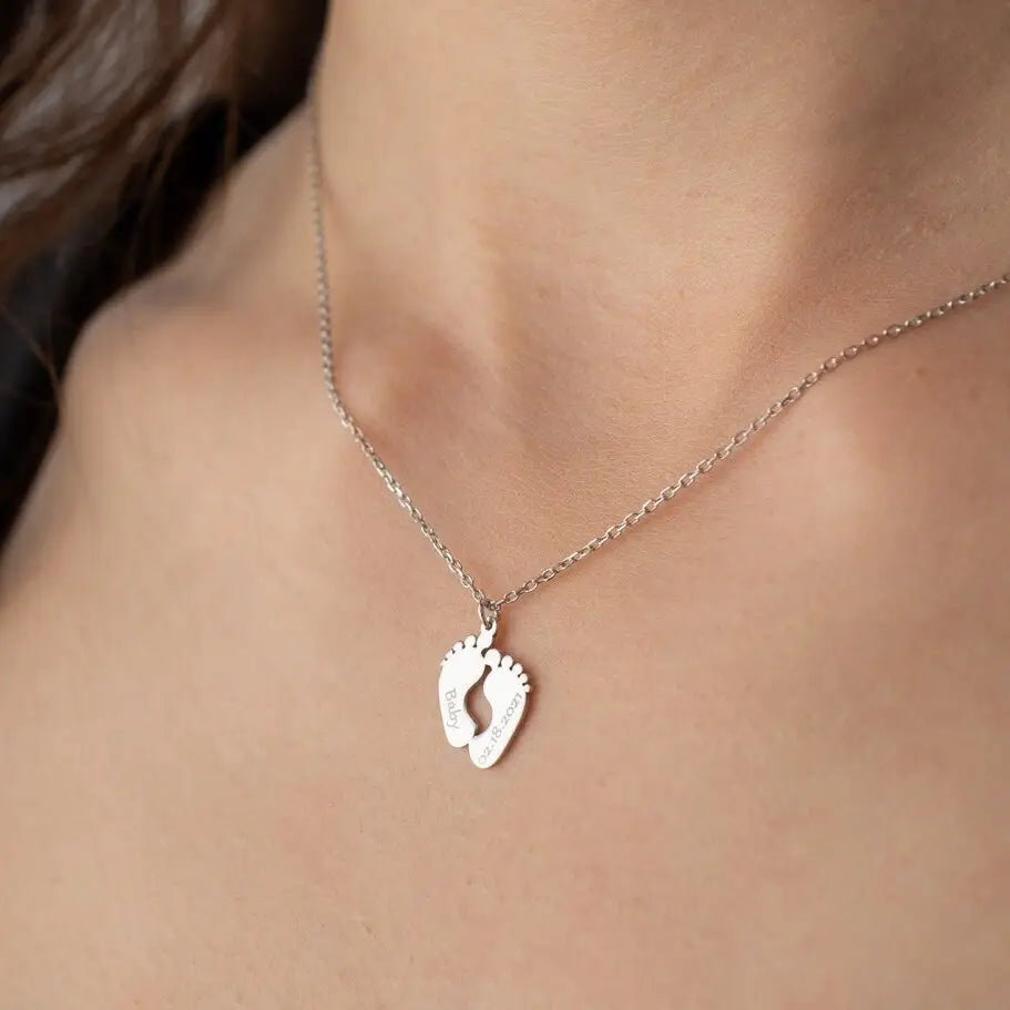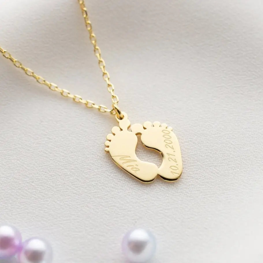 Collana Personalizzabile con Ciondolo Piedini color Oro Argento – Incisione Nome e Data