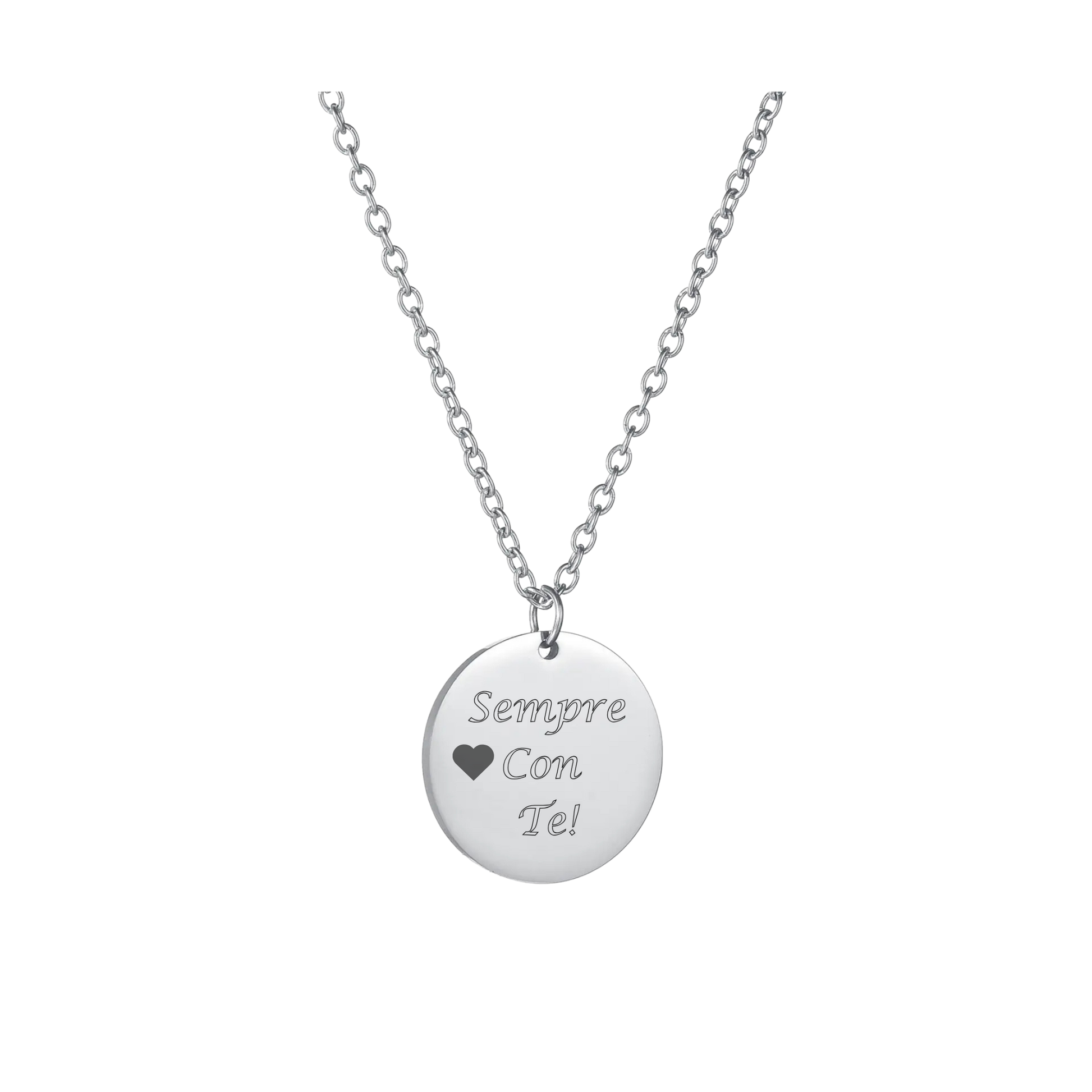 💎 Un gioiello unico per un regalo speciale! Questa collana personalizzabile è perfetta per chi ama i dettagli esclusivi. Il pendente rotondo in acciaio inossidabile può essere inciso con una frase, un nome, un’iniziale o persino una foto, rendendolo un dono indimenticabile.