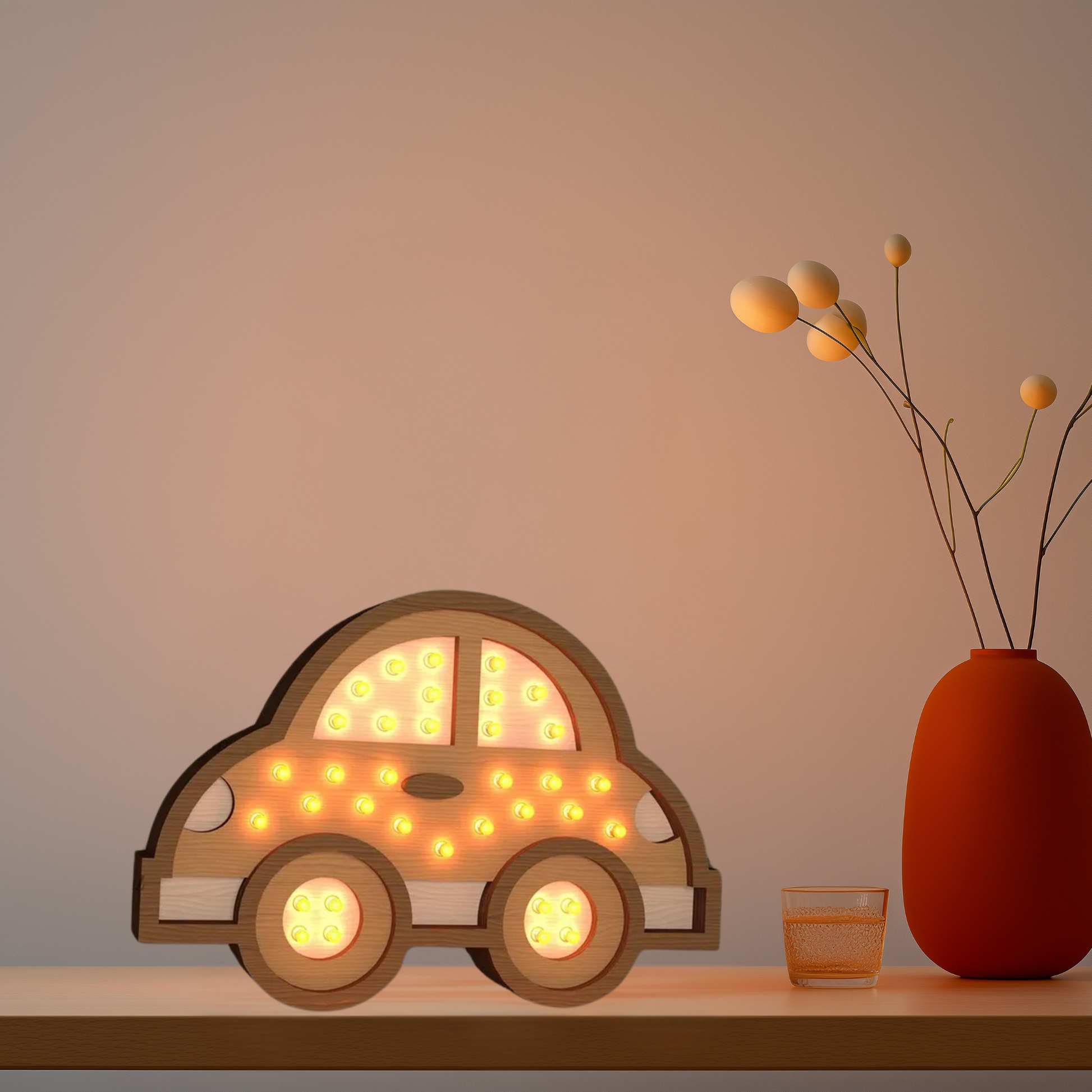 Lampada Notturna in Legno Automobile– Un Tocco di Magia per la Cameretta
