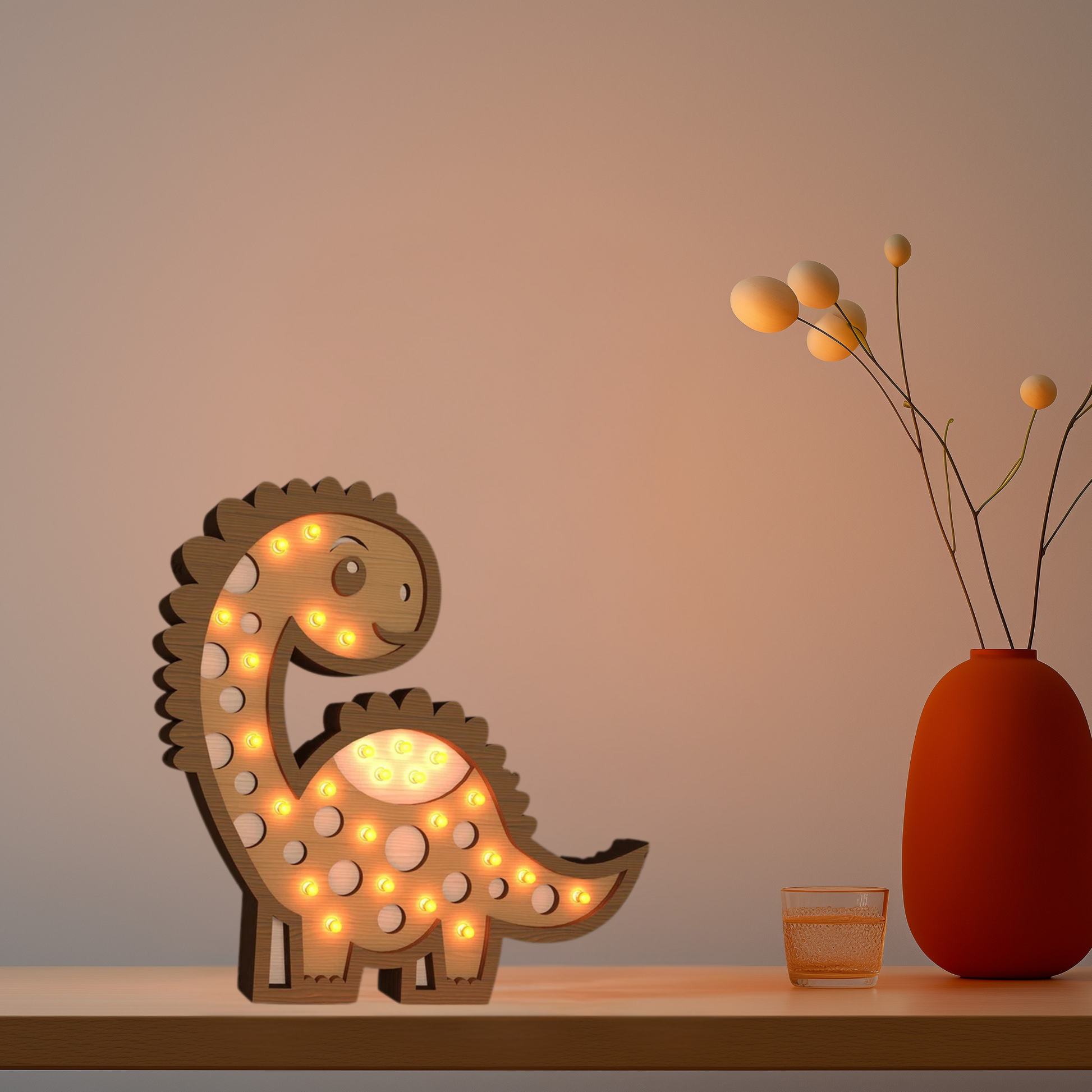 Lampada Notturna in Legno Dinosauro– Un Tocco di Magia per la Cameretta