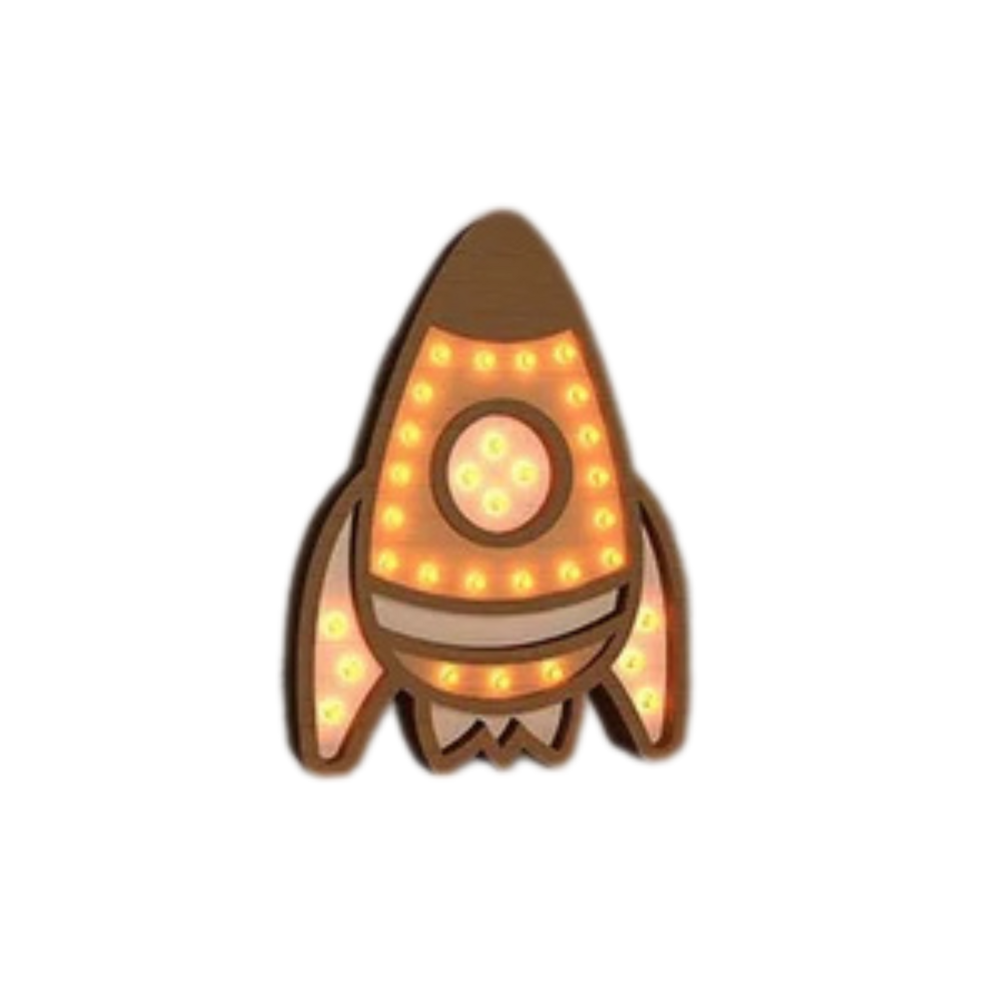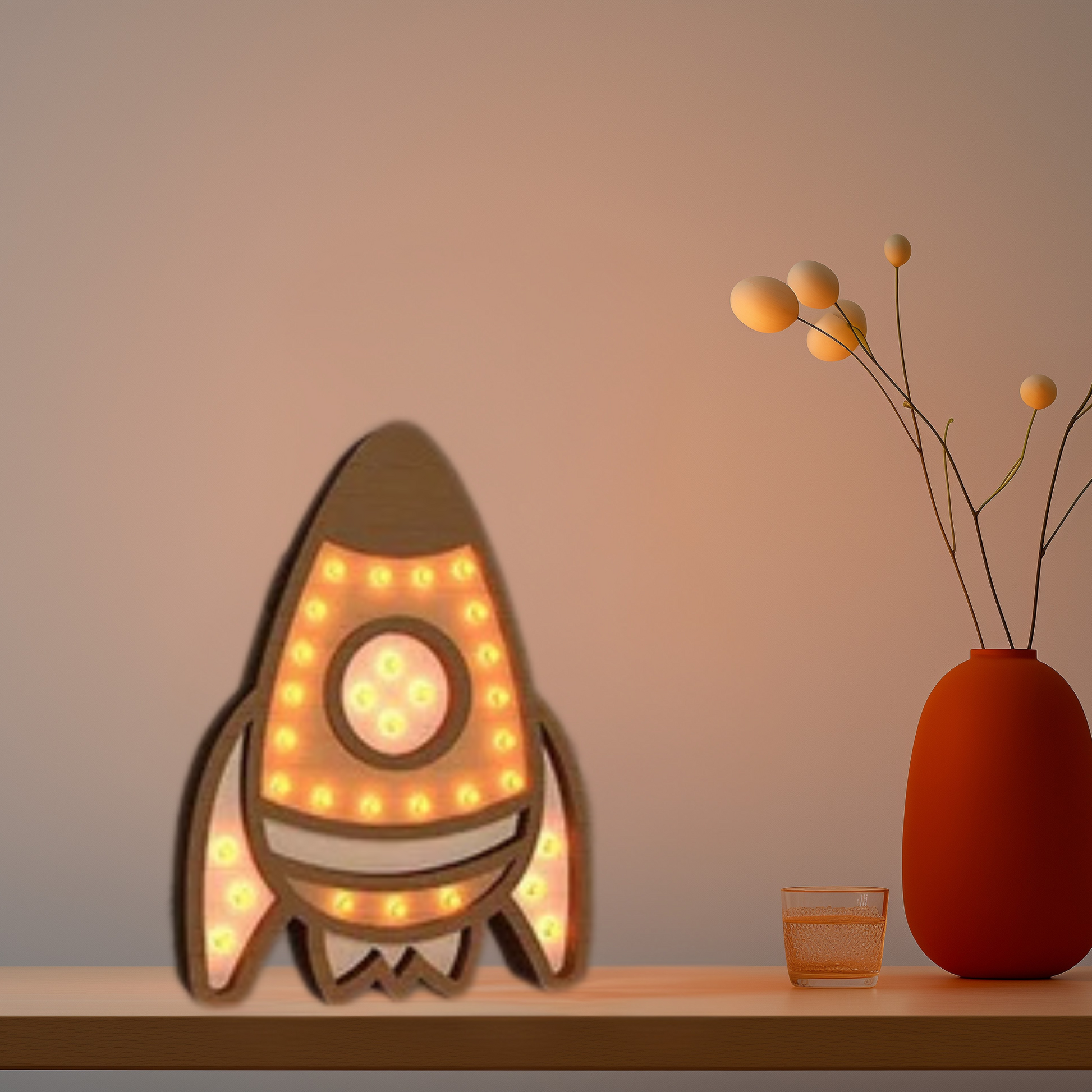 Lampada Notturna in Legno Razzo – Un Tocco di Magia per la Cameretta