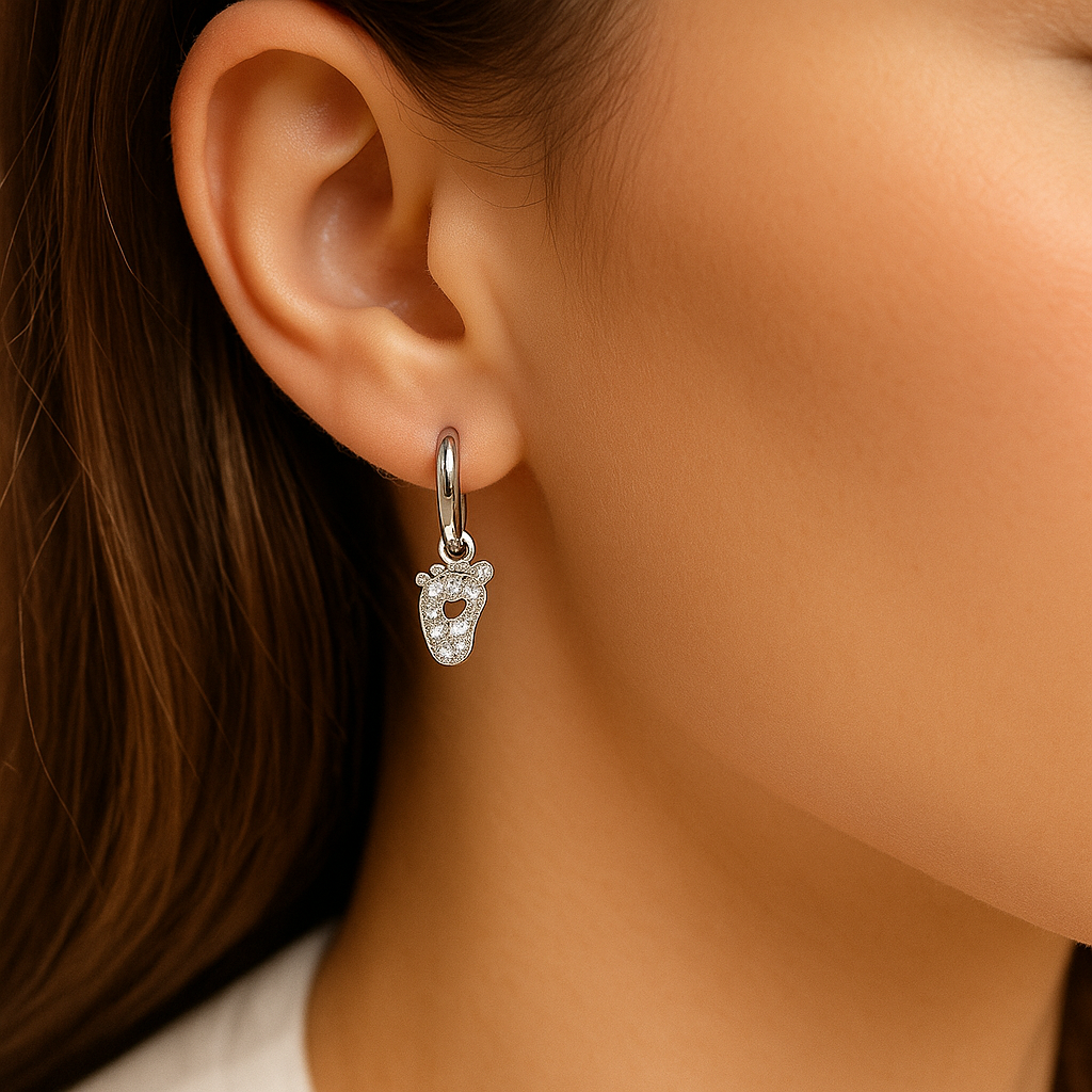 Gli Orecchini “Baby Steps” sono il gioiello che trasforma un’emozione in qualcosa da indossare ogni giorno 💖. Realizzati in acciaio 316L e disponibili sia in Gold che in Silver, uniscono brillantezza, significato e stile in un accessorio leggero e raffinato. Il charm a forma di piccolo piedino, impreziosito da cristalli luminosi e dal caratteristico cuoricino centrale, è pensato per raccontare un amore puro: quello verso i figli, un nuovo inizio o un legame speciale da portare sempre con sé ✨.