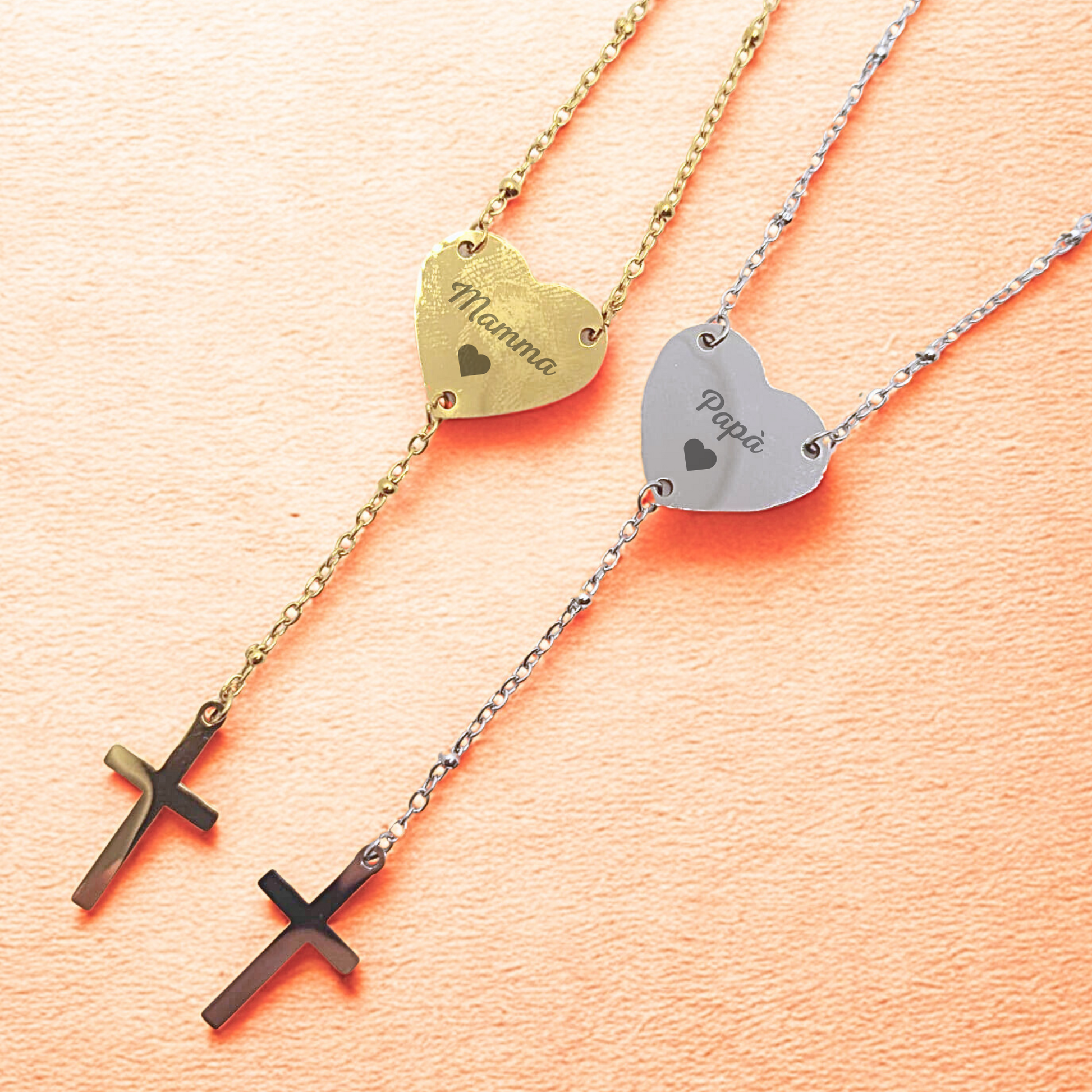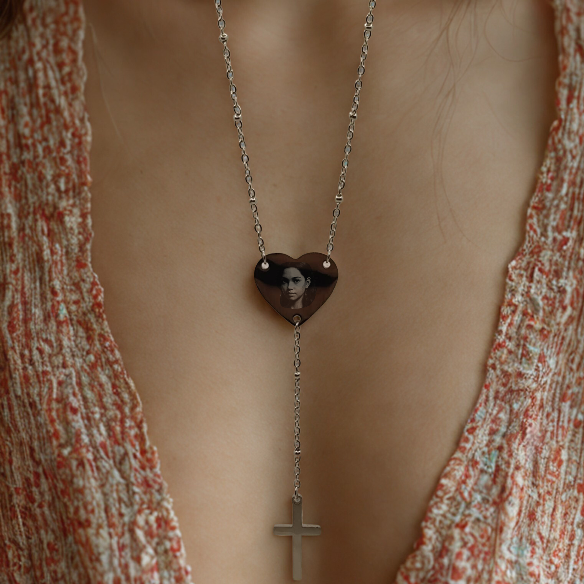 Proteggimi Sempre è il rosario che unisce eleganza e significato personale: personalizza il cuore centrale con un nome, una data importante o, da oggi, anche una foto speciale incisa al laser direttamente sul metallo.